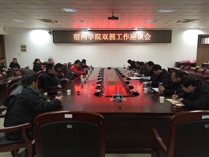 根据安徽省双拥办《关于做好新年春节期间拥军优属 拥政爱民工作的通知》精神和学校年度工作安排,1月10日上午,我校在逸夫楼第一会议室召开双拥工作座谈会。校党委委员、副校长李亮,校退役军人、军属教职工代表,工会、人事处、财务处、后勤总公司和保卫处(武装部)主要负责人参会,会议由李亮主持。