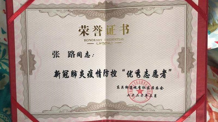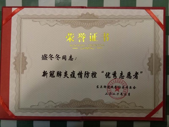 众的生命健康安全筑起“防护墙”,获评疫情防控优秀志愿者。