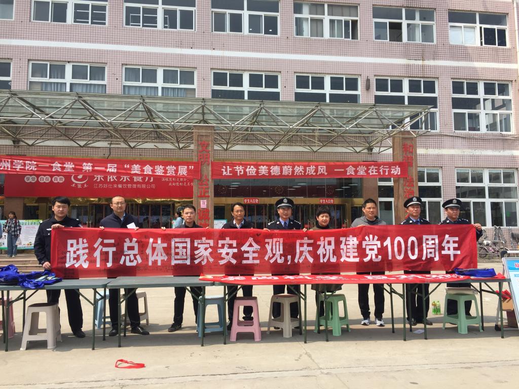 今年4月15日是第六个全民国家安全教育日,为提高我院师生自觉关心、维护国家安全意识,提升安全风险防范水平,按照省厅统一部署和学院《关于组织开展2021年全民国家安全教育日宣传教育活动的通知》要求,我院于4月15日联合宿州市政法委、宿州市公安局反邪支队、宿州市保密局、埇桥区公安局国保大队等单位开展国家安全教育日宣传教育活动。院党委书记汪刘送,党委委员、副院长李亮,宣传部、学工部、办公室、团委、保卫处主要负责人和二级学院党委书记代表参加活动。