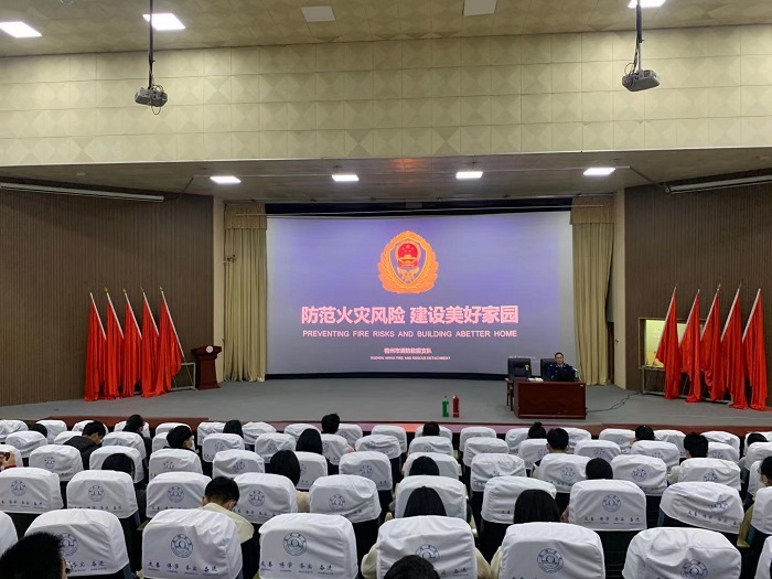 宿州市消防救援支队何孟浩警官从消防安全基础知识,火场逃生、自救知识以及消防器材使用、检查和维护三个方面进行了讲解。通过大量真实案例与理论相结合的方式为大家传授防火技巧和应对措施,同时指出生活中的防火要领。