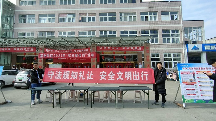 2021年12月2日是第十个“全国交通安全日”,为进一步加强交通安全教育,提高广大师生的交通安全意识和交通文明素养,12月8日,我校组织开展了以“守法规知礼让、安全文明出行”为主题的交通安全宣传活动。
