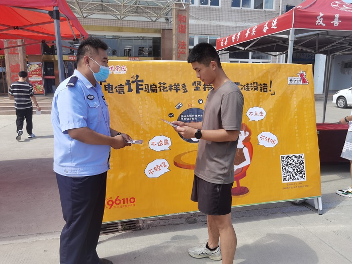 为进一步提高广大师生防骗意识和识骗能力,预防和减少校园电信网络诈骗案件发生,9月16日上午,我校联合校园警务站在学校一食堂门口开展反电诈宣传活动,共同守护校园安全,加大普及反电诈知识。