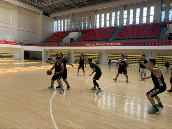 篮球友谊赛在宿州学院教育园区体育馆进行,赛场上,双方队员攻防转换快,争抢激烈,赛场下,掌声加油声此起彼伏,赛场气氛紧张而活跃,双方如亲人一样,体现了“军民一家”的人文精神。比赛后,双方队员进行了交流学习,加深了彼此的友谊情谊。