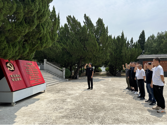 大家踏着先烈的足迹缅怀英雄事迹,瞻仰烈士丰碑。保卫处全体党员在盛圩革命烈士纪念碑前重温入党誓词,在烈士纪念馆中学习体会革命先烈英勇斗争的革命精神。