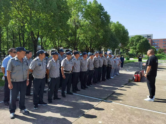 为全面加强学校安全管理,持续做好消防安全宣传教育,提高第三方服务人员消防安全意识和应急处置能力,2023年7月5日上午,保卫部联合后勤与基建管理处在艺术楼南篮球场开展消防技能培训和灭火器、消火栓实操演练。