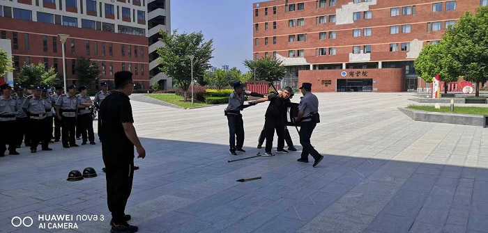 为提高安全防范意识,维护校园安全稳定,有效处置突发事件。2023年8月5日上午,保卫处组织全体安保人员在教育园区校区开展安保业务知识讲座和防暴演练。