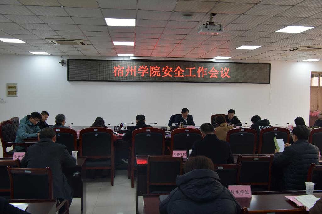 为深入学习贯彻习近平总书记关于安全生产的重要论述精神,落实省委省政府,省委教育工委、省教育厅关于学校安全工作部署。12月6日下午,我院在逸夫楼第一会议室召开安全工作会议,党委书记李红,党委委员、副院长杨维志出席会议,宿州学院安全工作领导小组成员,各二级学院书记、院长参加会议。会议由党委书记李红主持。