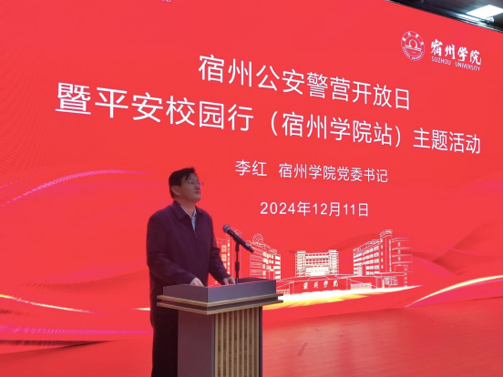 12月11日下午,宿州公安警营开放日暨平安校园行(宿州学院站)主题活动在宿州学院教育园区举行。宿州学院党委书记李红,党委常委、副校长杨维志,宿州市公安局党委委员、政治部主任孙勇,宿州市公安局民警代表以及各行政部门负责人,二级学院党委书记和师生代表等五百余人参加。