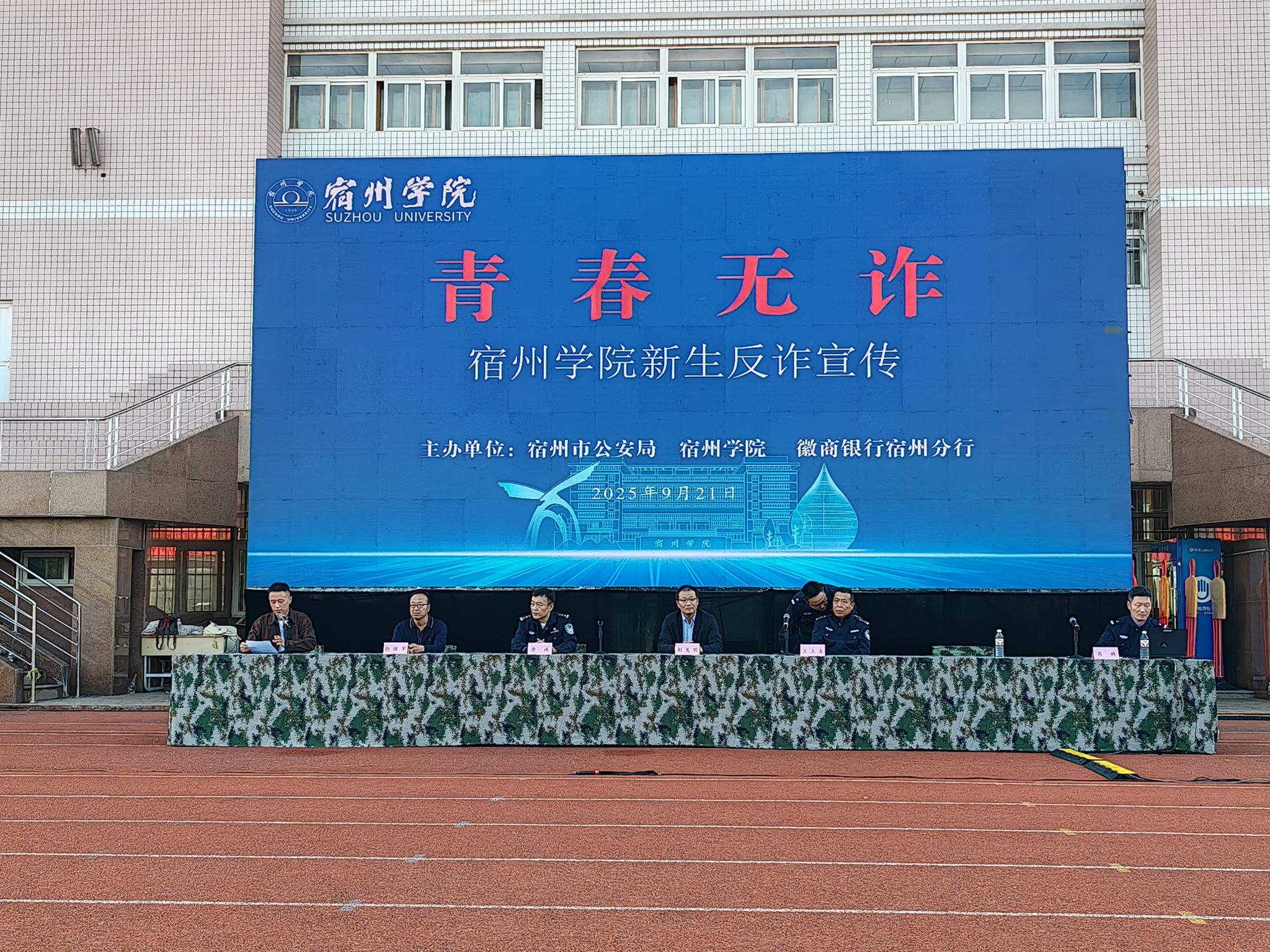 为提高2025 级全体新生反诈意识,有效抵御电信网络诈骗风险,2025年9月20日,我校在教育园区校区运动场举办了一场以“青春无诈”为主题的反诈专题讲座。