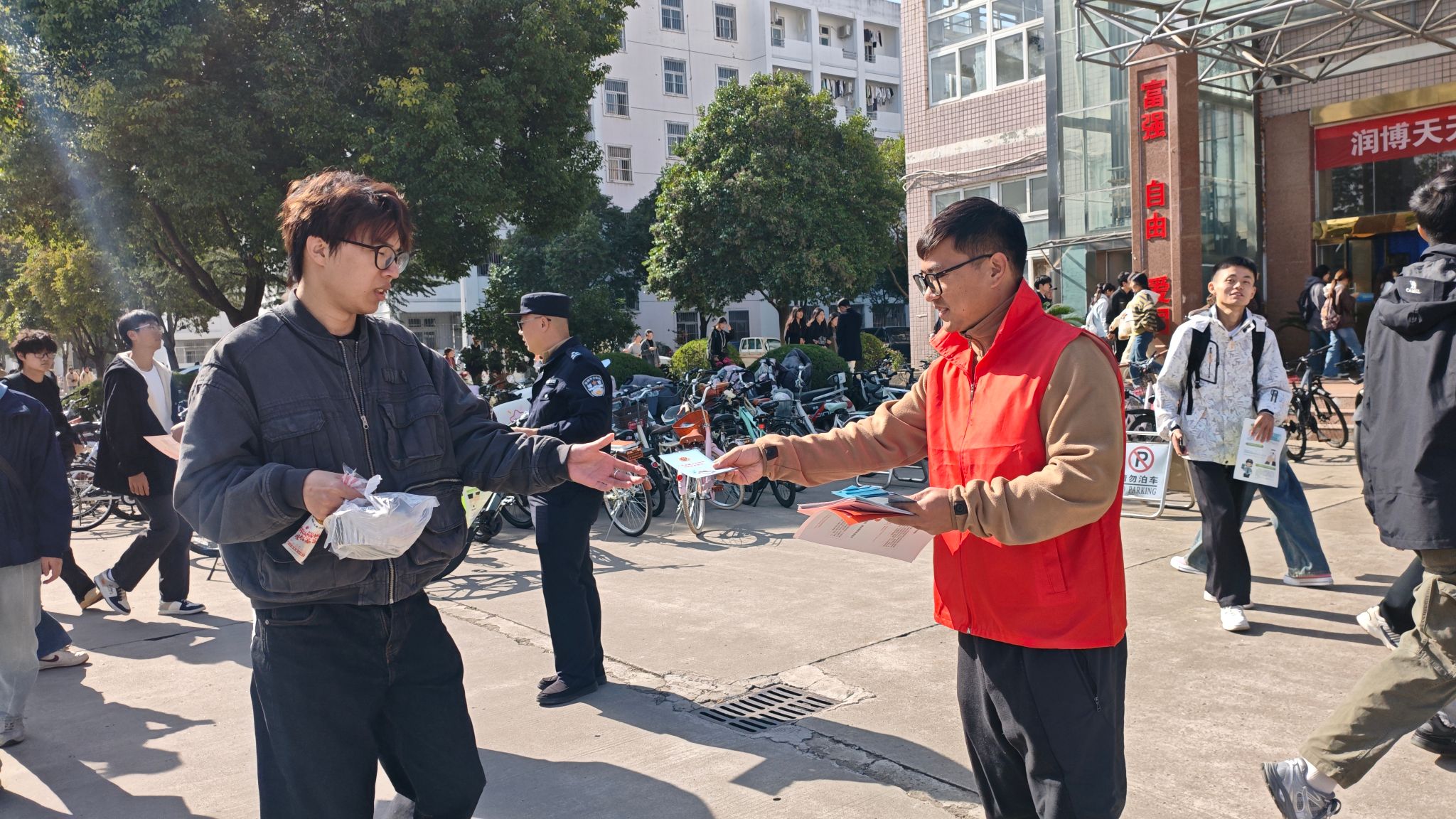 活动现场,工作人员向过往师生发放消防安全手册和主题宣传单,并向同学们宣传用火用电安全知识。资料内容紧密围绕宿舍内严禁使用违规电器、如何为电子产品安全充电、实验室仪器操作规范、遇到火情如何正确报警与逃生等与学生日常息息相关的安全知识点。